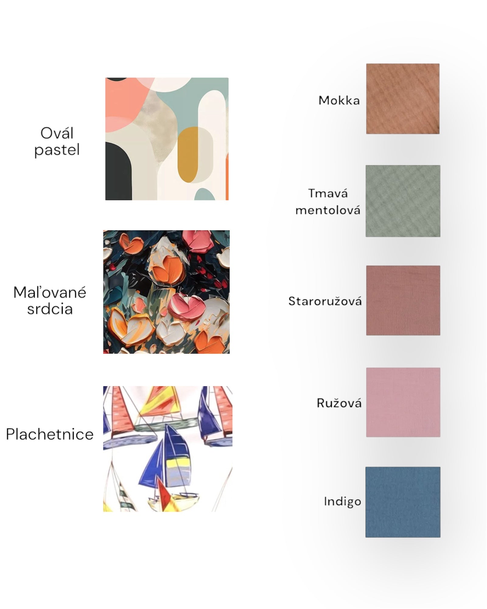 Nadizajnuj si kojo (v prípade záujmu o nekojo verziu nám to prosím napíšte do poznámky) mušelinové šaty podľa svojich predstáv. Vyber si vzor pre vrchnú časť a farbu mušelinu pre spodnú časť šiat.