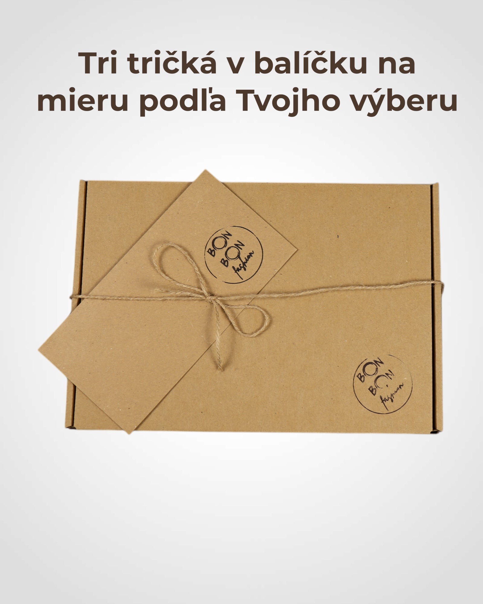 Set ti príde zabalený v darčekovej krabičke, pripravený potešiť. Súčasťou balenia je aj malý darček – tri ekologické pracie papieriky, v ktorých môžeš tričká rovno oprať (nie všetky spolu, čierna môže prvýkrát púšťať).